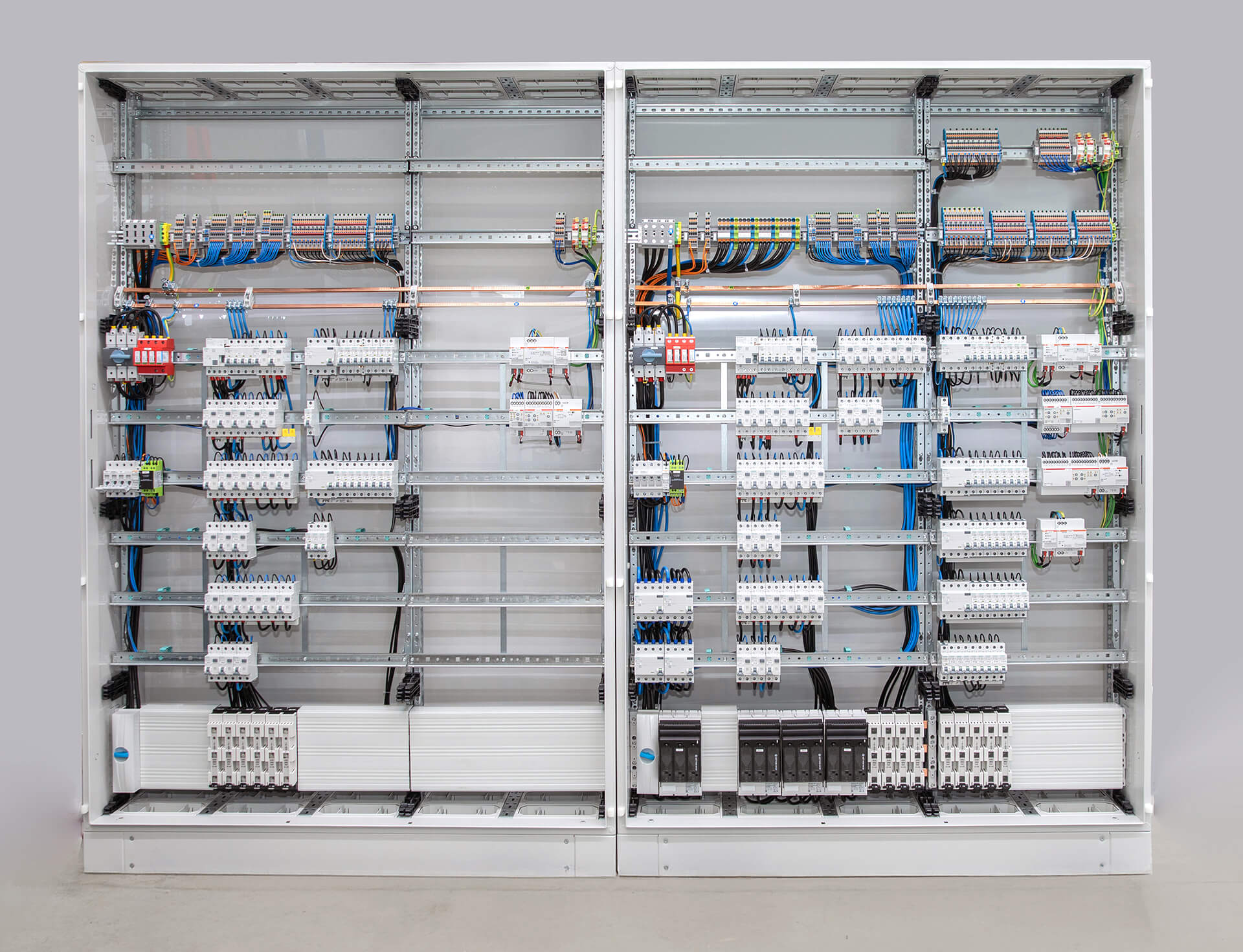 Mit Hilfe modernster Fertigungstechnologien fertigen wir die Schaltanlagen ausschließlich in unserer betriebseigenen Werkstatt. So bieten wir unseren Kunden vom Anfang bis zum Ende der Projektphase ein hohes Maß an Flexibilität. Jede Anlage durchläuft unser Prüffeld zur Qualitätsprüfung. Dies gewährleistet die hohe Qualität unserer Produkte. Die anschlussfertigen und geprüften Produkte sind Installationsverteiler für die Gebäudeinfrastruktur.
