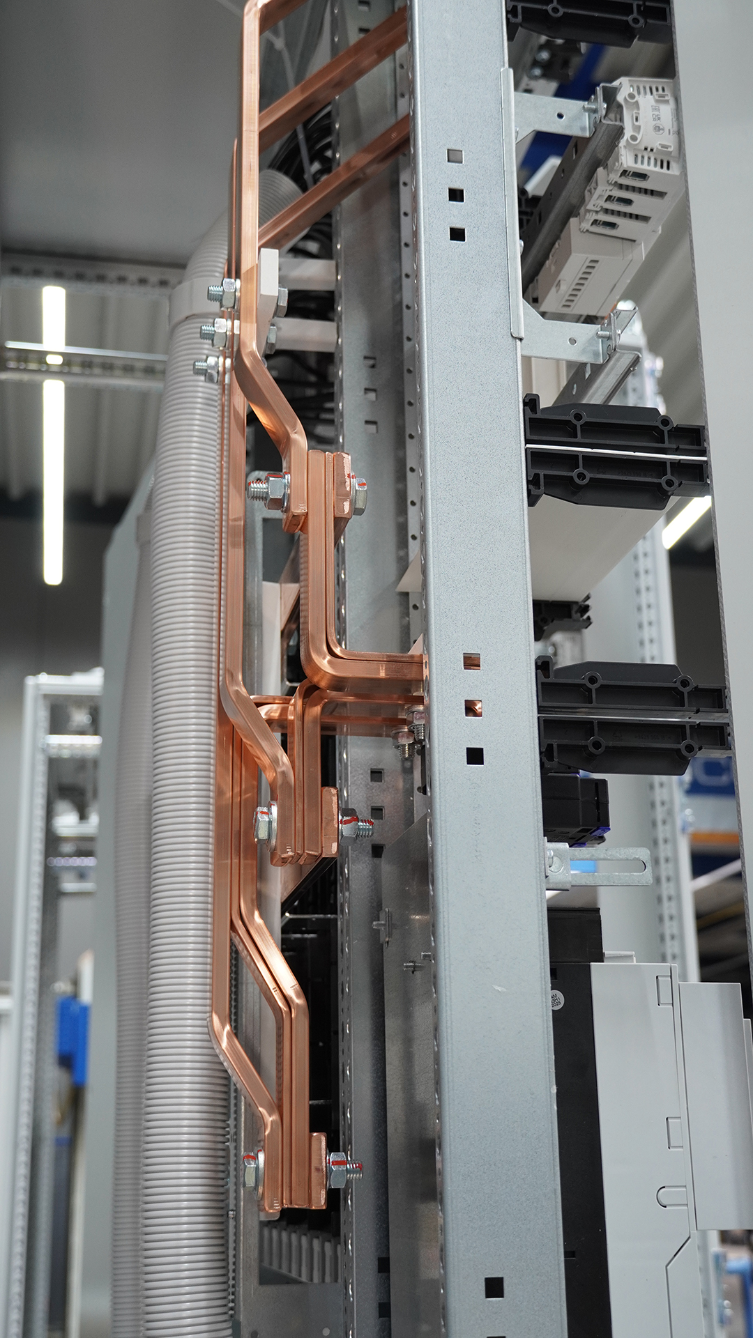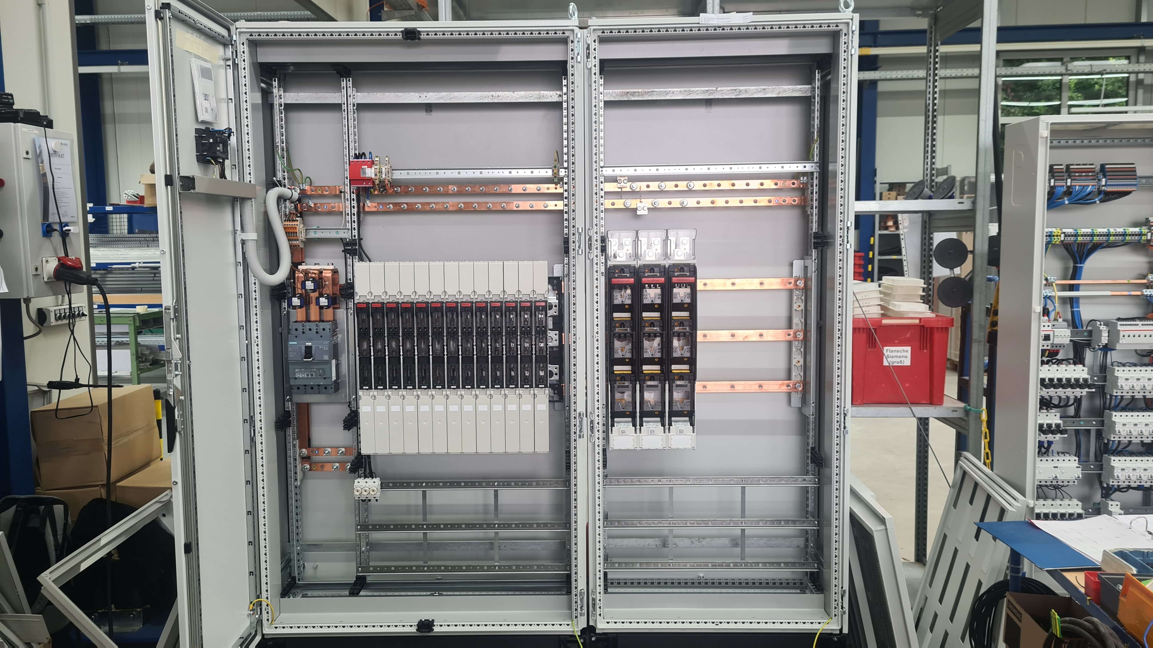 Das Anreih-Schranksystem VX25 von Rittal kann u.a. als Installationsstandverteiler mit ISV-Ausbaumodulen von Siemens oder Striebel&John mit bis zu 1250A geliefert werden. Gleichzeitig kann der Innenausbau mit speziellen Zubehörteilen zu einem Energiestandverteiler mit bis zu 3200A ausgebaut werden. Weiterhin umfasst das Portfolio von Rittal Wand und Standgehäuse in unterschiedlichsten Abmessungen für einen individuellen Innenausbau auf Montageplatten oder Profilschienensystemen.